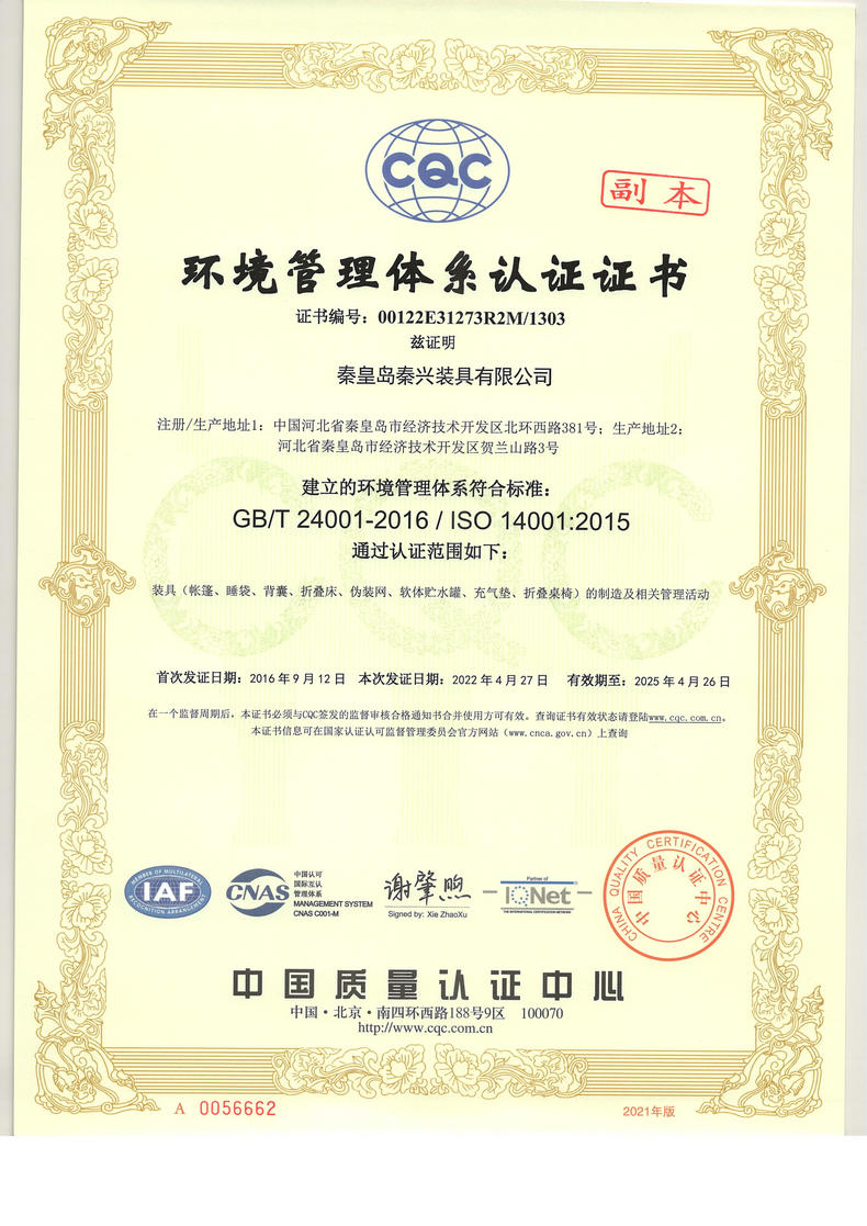 秦皇島秦興裝具有限公司有限公司源于我國第3524工廠,創(chuàng)建于2005年,占地面積30畝,是一家致力于研究,發(fā)展,制造和銷售為一體的綜合性裝具及紡織服裝加工生產企業(yè),我們的主要產品有單、棉帳篷,民用帳篷,旅游帳篷集各種機工產品等。